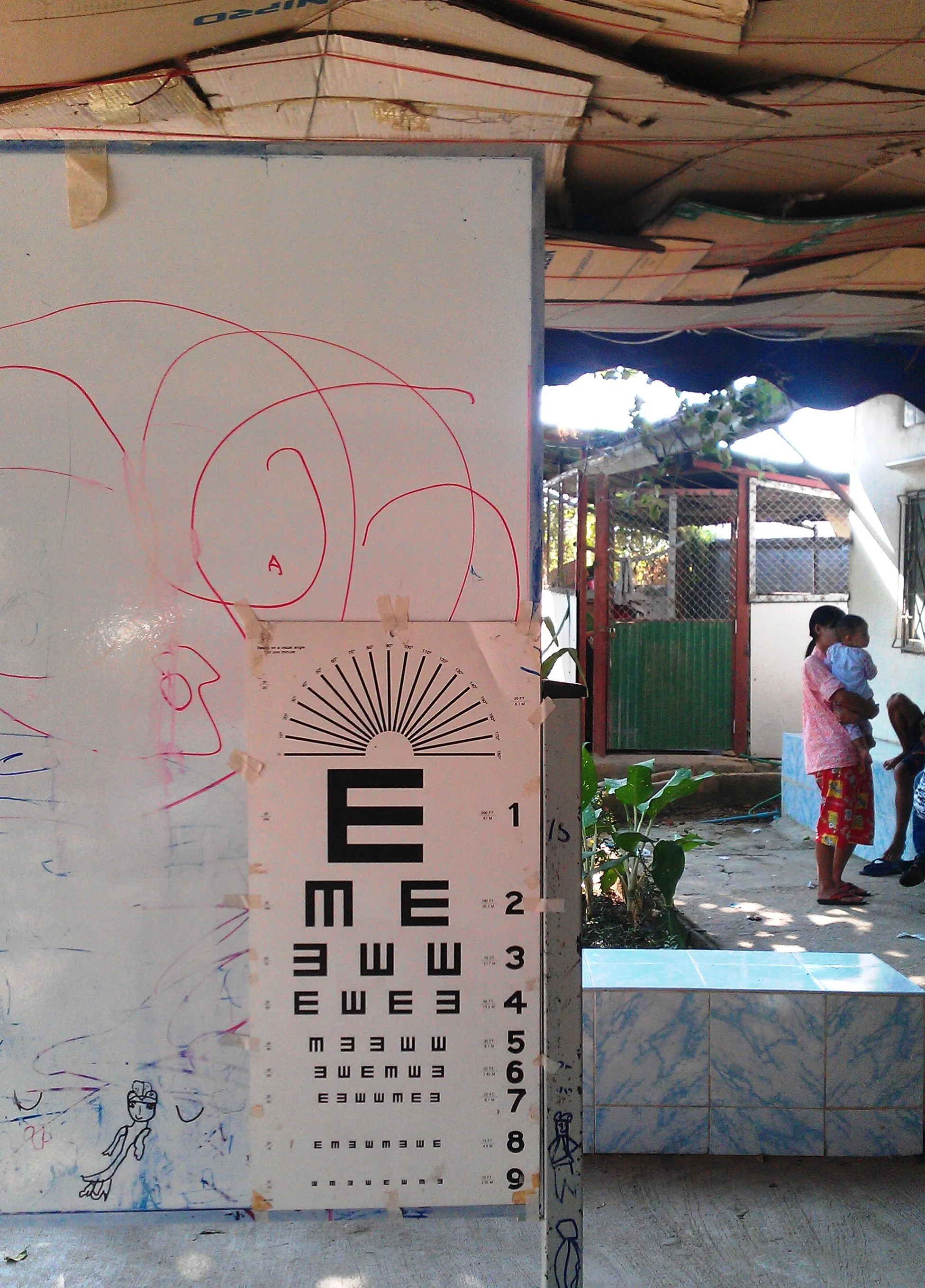 走進院區,很快就看到許多人聚集在眼科部門前,排隊進行視力檢查。眼科部門的計畫負責人 Mr. Kon、英籍醫師 Dr. Frank 和 Dr. Tom 為我們介紹了眼科團隊的沿革、服務內容與近期需求,包括當地醫療人員薪資津貼,設備、手術耗材、以及一年 6,000 多副眼鏡等。