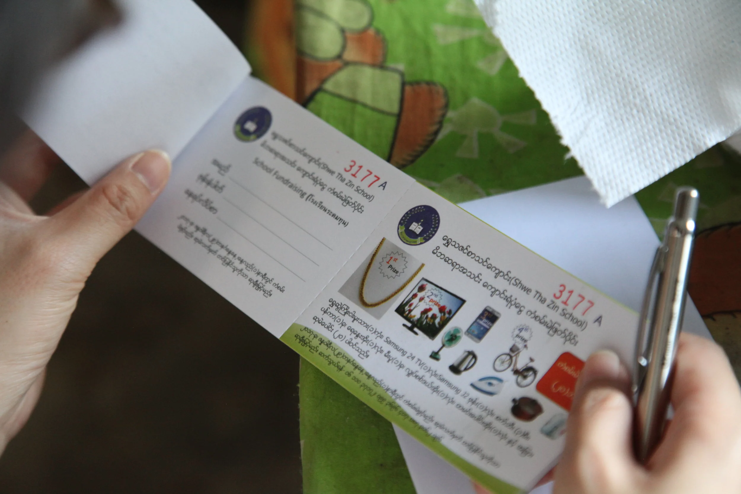 為了增加學校經費來源,讓學校的營運能夠更穩定,老師們發揮創意,開發了「摸彩券」,每張 20 泰銖,由學校委員會與家長會販售給鄰近工廠的工人們,也有許多工人熱心幫忙在工廠販售。銷售額的一半用於採購獎品,幸運者可以抽到電視、熱水瓶等獎品;盈餘則作為學校營運經費,「大家的反應很熱烈、很踴躍支持,雖然募到的金額不大,但我們還是努力做,希望至少能湊足地租的錢。」